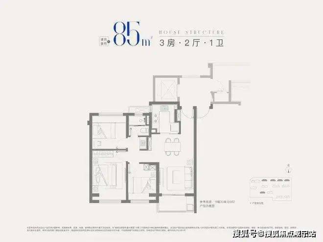 建面约85㎡3房2厅1卫