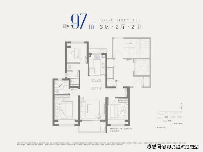 建面约97㎡3房2厅1卫