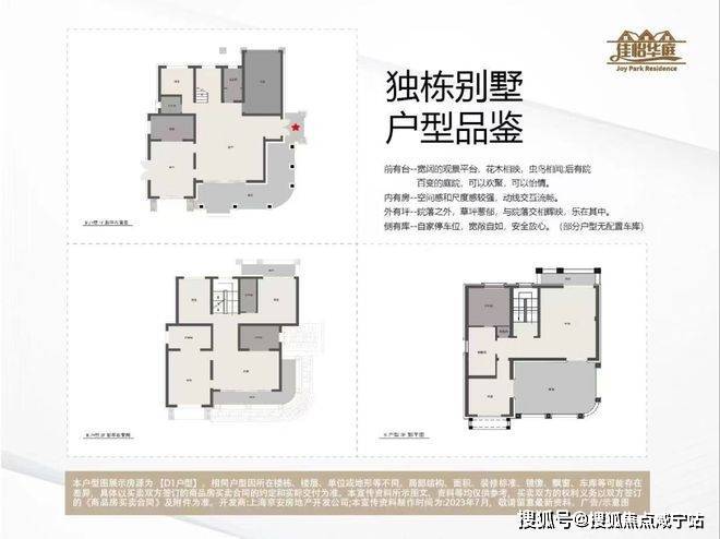 双拼:277-302㎡,4 房 2 厅 4 卫,地上 3 层 + 地下 1 层,南向 10.8 米面宽、全明通透、全景落地窗,附赠 80-120㎡私家庭院 + 双车位
