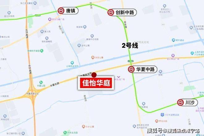 佳怡华庭项目位于川沙和唐镇交界处,和唐镇仅相隔一条华夏东路,距离2号线华夏东路站约1.3km。