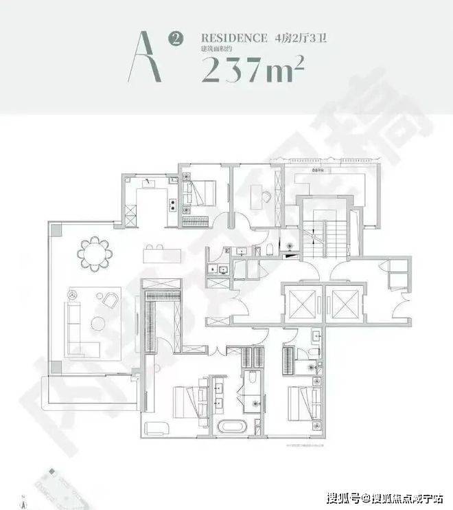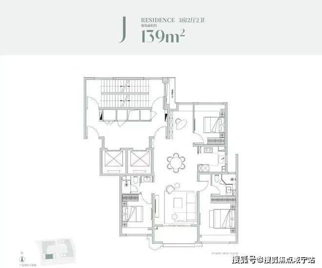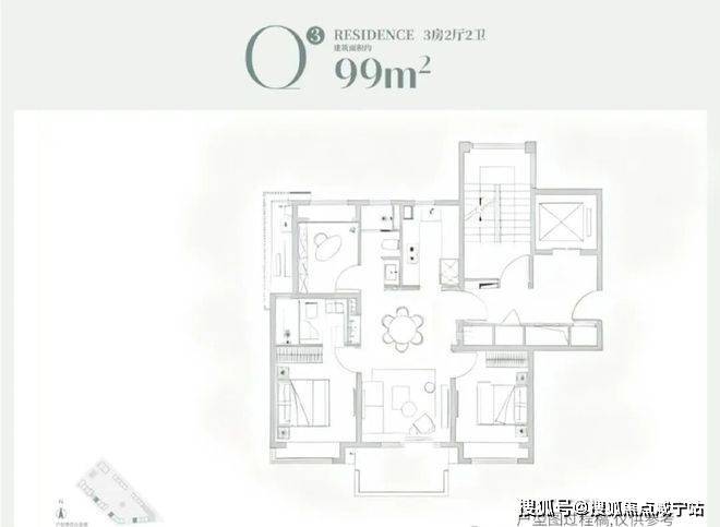 建面约86m²3房2厅2卫: