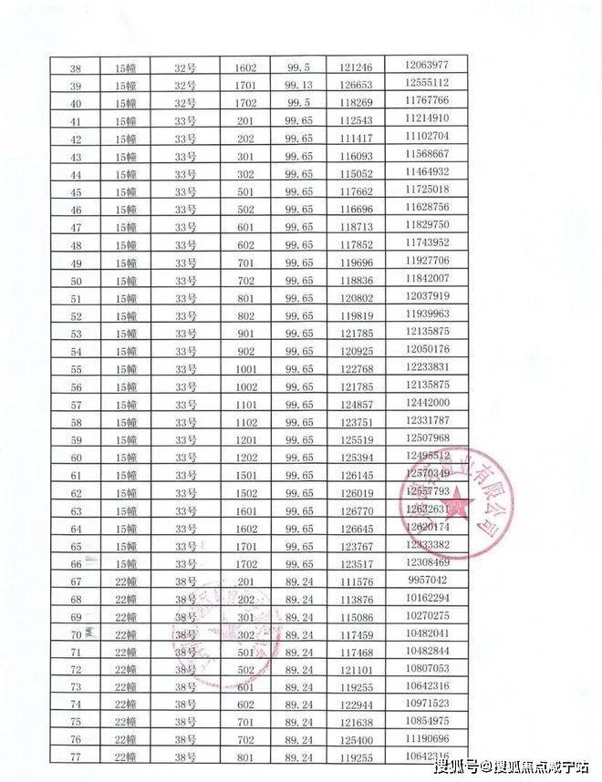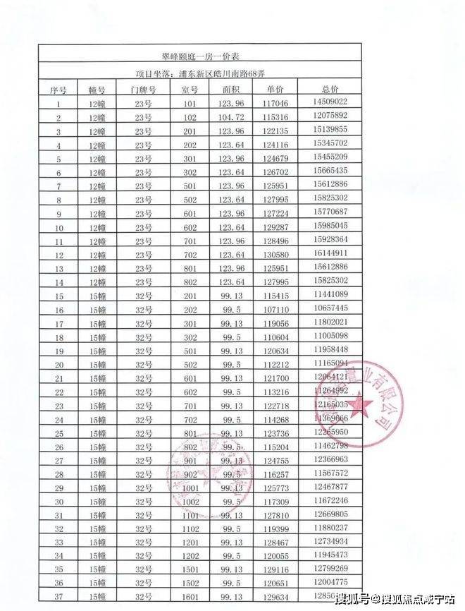 一房一价表如下: