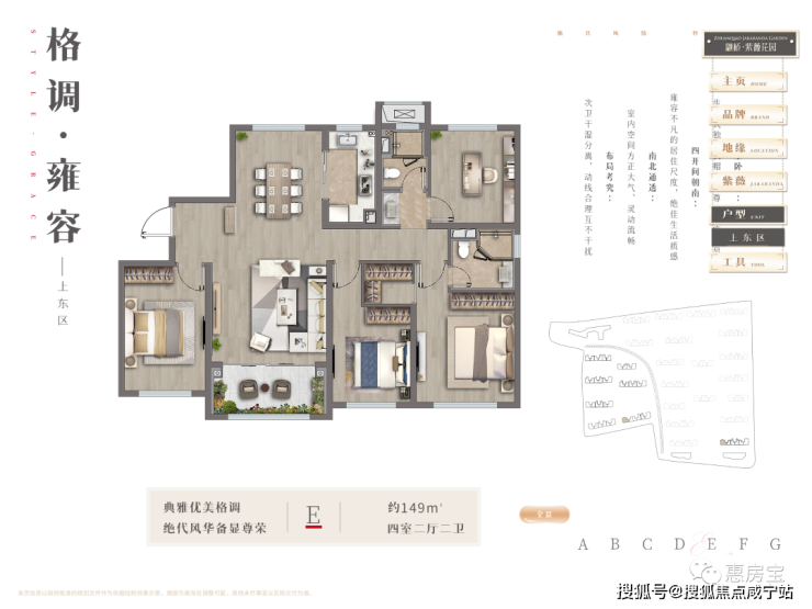 建筑造型上,项目采用了上海经典风格,融入了海纳百川的海派文化精神,立面采用爱和陶红砖搭配沉香米黄石材干挂。紫薇系升级作品,越级品质,臻致资源与匠心品质完美合一。