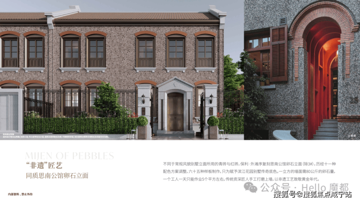 建筑美学的时光对话在这里上演:项目复刻思南公馆同款卵石立面工艺,工匠需手工逐块镶嵌经过28道工序处理的天然卵石,让粗粝石材在岁月打磨中形成温润包浆。硬山双坡顶搭配红色机平瓦,老虎窗与圆弧拱券的经典组合,将海派建筑的"红砖记忆"与"铁艺柔情"演绎得淋漓尽致。更令人惊叹的是"一轴五巷"的街巷肌理——黛云巷的雅韵、樱云巷的灵动,6.5-10米的宽奢栋距,让浓荫里弄的生活场景在当代重生。