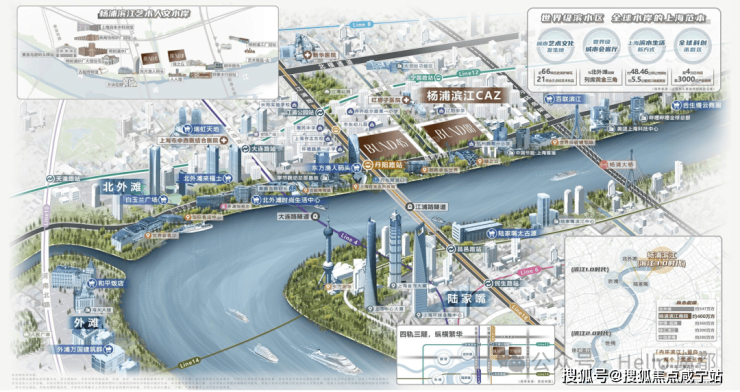 当黄浦滨江的万国建筑群成为历史标本,当陆家嘴的摩天楼群定格为城市封面,上海滨江开发的最后一块黄金拼图落在了杨浦滨江南段——这里是上海中央活动区(CAZ)规划的战略要地,也是黄浦江第一道S湾的核心所在。保利·外滩序正站在这片土地的几何中心,直线距离黄浦江仅约500米,将陆家嘴金融城、北外滩航运中心与杨浦科创带纳入2公里生活圈,构成"黄金三角"的终藏版图。