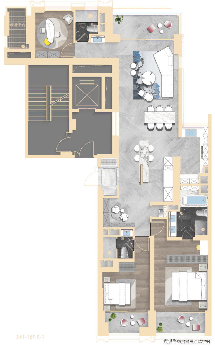 4#楼王总高16层,均为大户型产品,圈层更纯净!主力建面约193-302㎡,户型图如下: