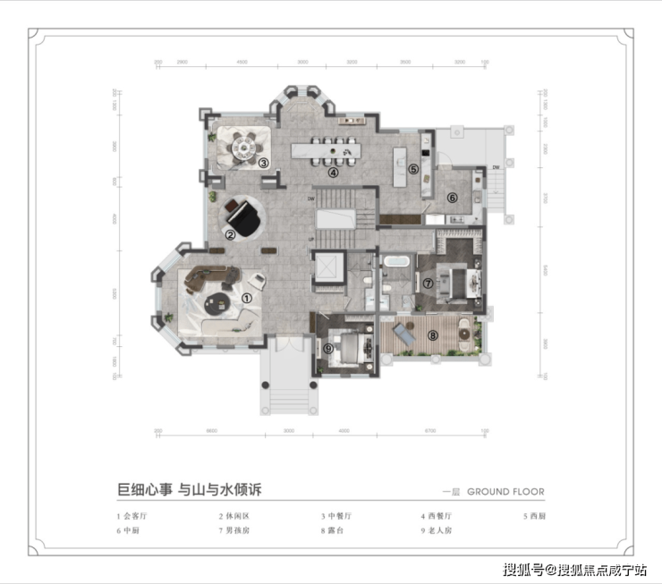 本案建面:891.01㎡ 挑空 9.8 双厅