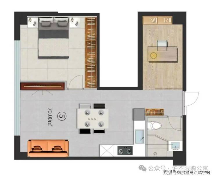 03室,57.91㎡ 东北边套全明带大露台 235万