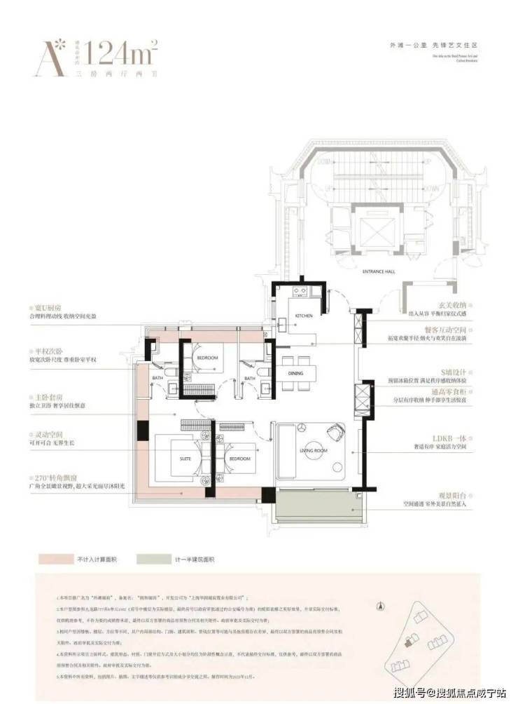 建面约124㎡经典的三房布局,高效满足主流家庭的居住需求,每一房间均设计有观景飘窗,让外滩的天际线成为日常生活的背景。创新的S墙设计与南向次卧“可开可合”的灵活隔断,在有限面积内实现了功能与美感的精妙平衡。