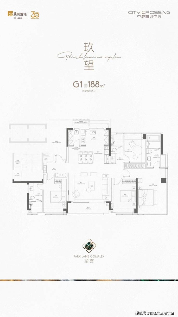 188㎡户型四房三卫,绝对属于北中环最佳改善户型之一,六开间朝南,超大南侧采光面宽,双主卧设计带来非常好的家庭居住体验。