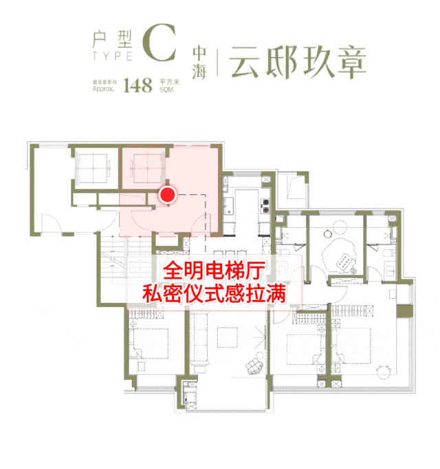 再来重点看楼王7号楼,全部是建面约148㎡4房改善大户型,可以说集项目所有精华于一体。