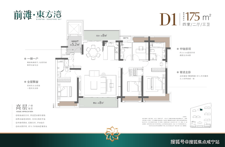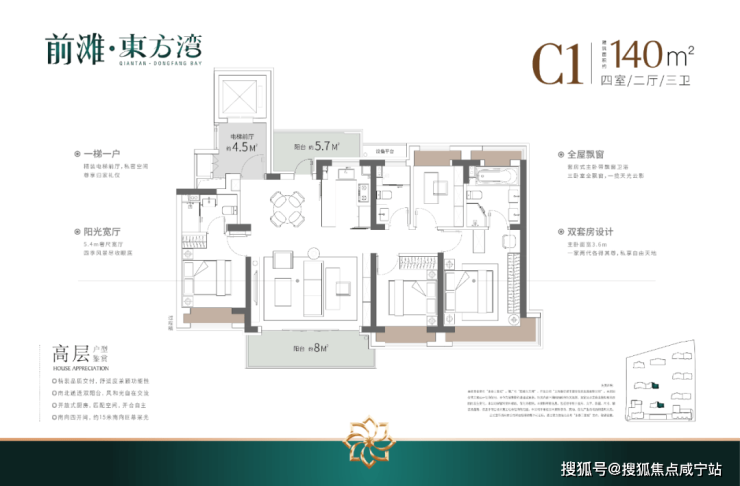 ④产品升级:全铝板立面+带恒温泳池会所+全部(类)1梯1户+标准层高3.1-3.15米,适配高端改善人群居住。
