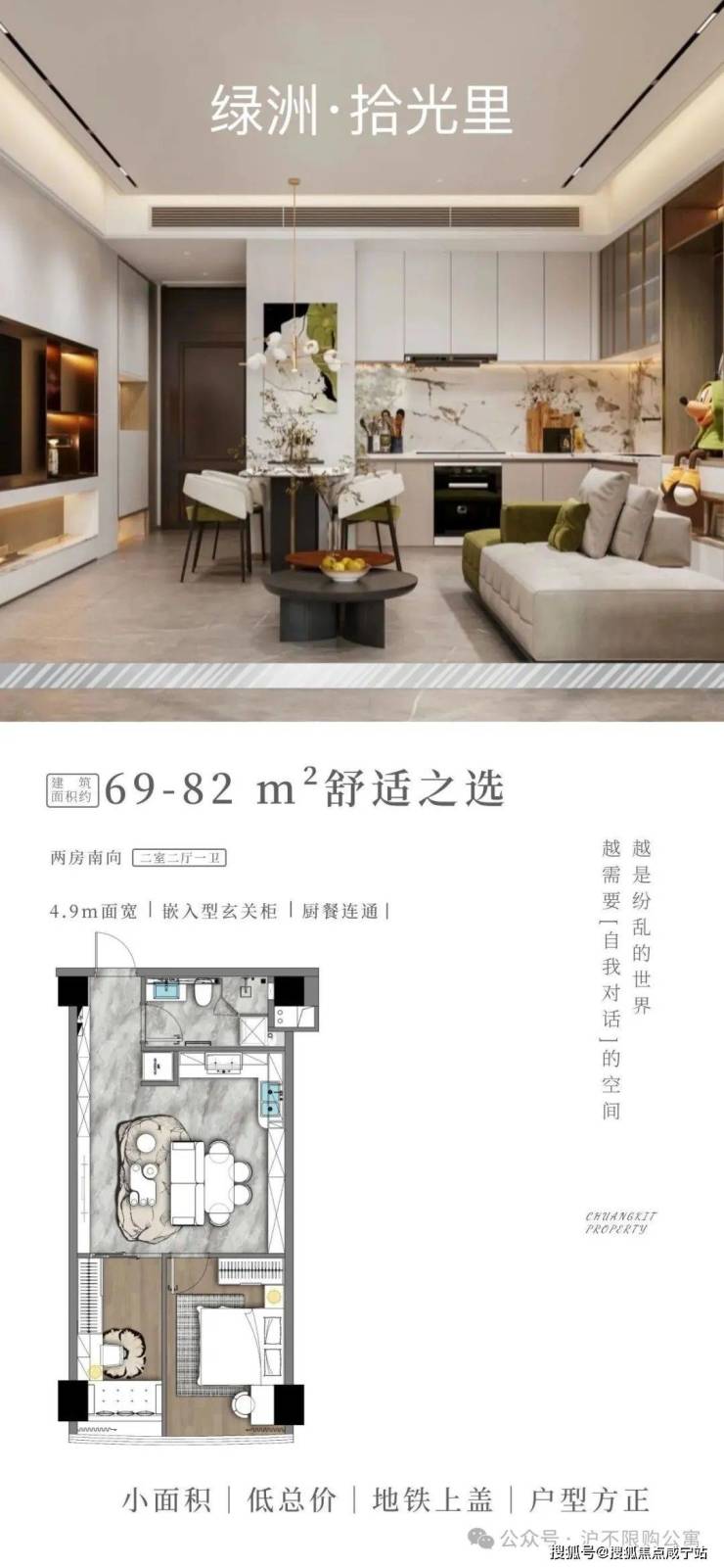 普陀13号线地铁上盖,【绿洲·拾光里】面积69-89平精装公寓,总计3字头起