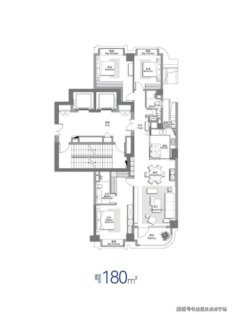 建筑面积约180㎡3房(户型过程稿,以实际交付为准):