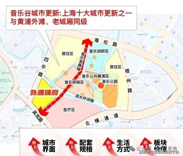从投资角度而言,华润外滩瑞府所处的北外滩区域是上海重点发展的功能区,未来将承接更多的城市资源和政策红利[20]。项目周边正在规划建设滨水步道,未来可通过步道直达音乐谷等文化艺术现场[21],区域的文化价值和休闲配套将进一步提升。