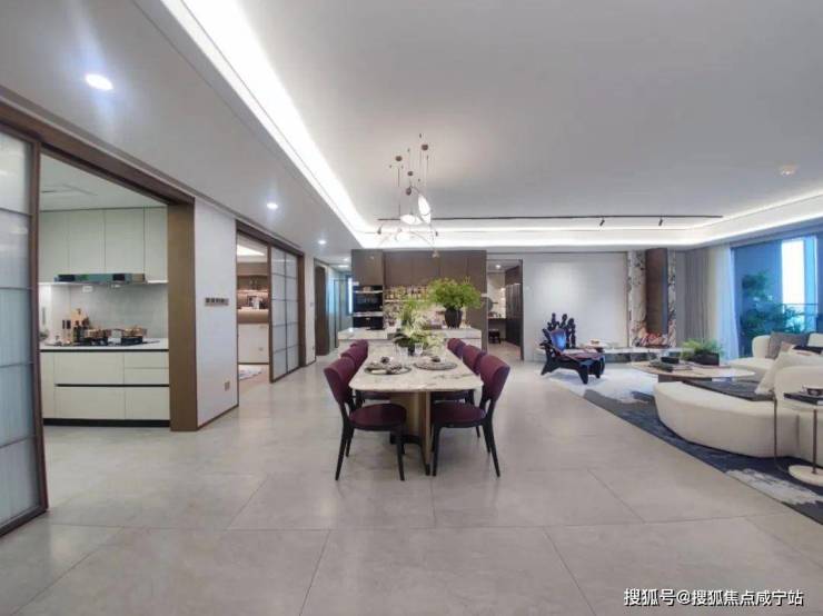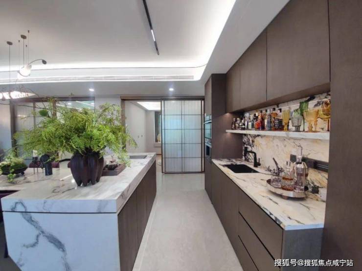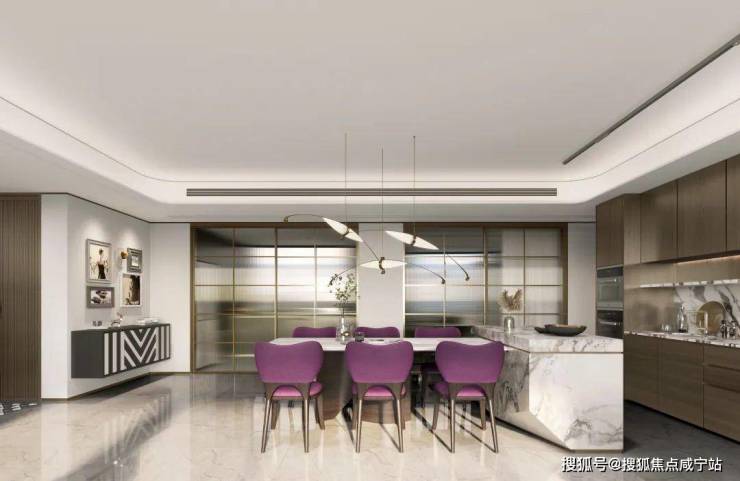 在客厅另一侧,连接客厅和厨房的岛台,LDKG一体化,进一步放大整个空间社交属性。营造N+种居家与聚会场景,让横厅的社交属性得到充分放大。