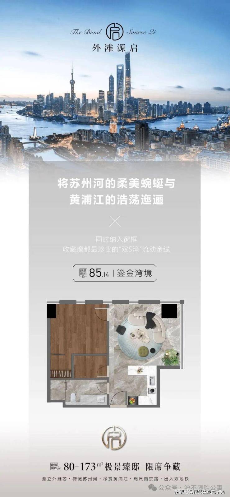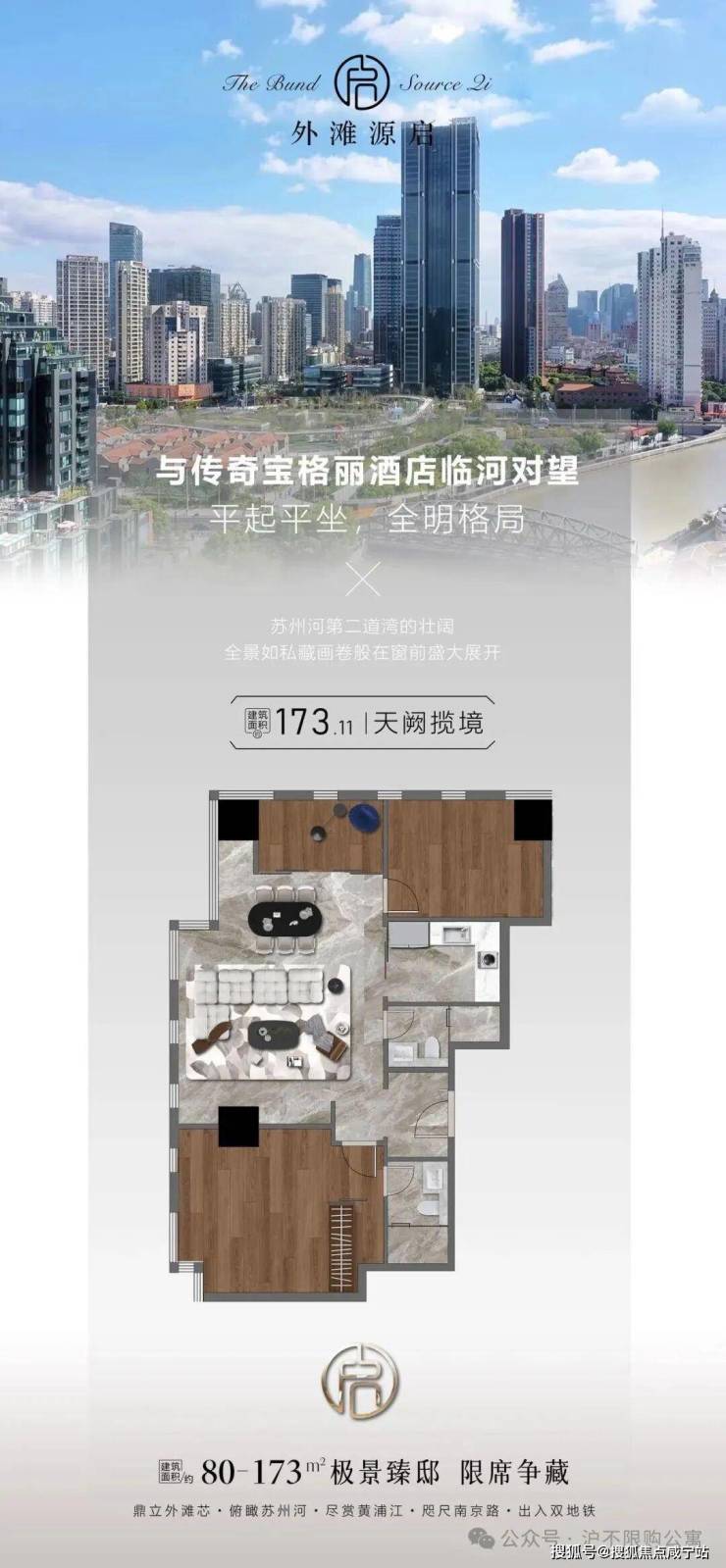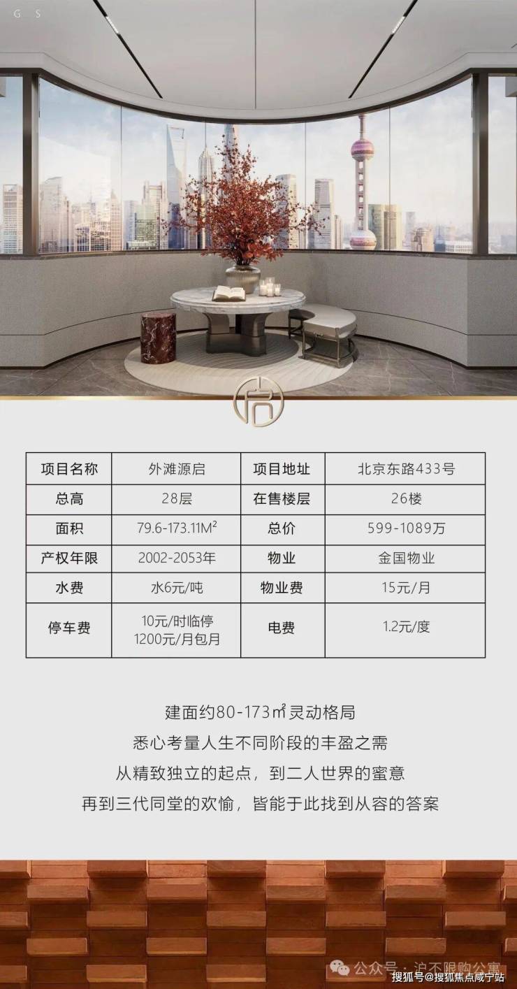 主力户型预计为79.6-173.11平,参考同地段滨江公寓(如外滩滨江国际)总价"一字头"(即千万级起),单价或达15-18万/㎡。稀缺边套户型将配设瞰江露台,复刻绿城黄浦湾"10年不落幕城市景观"的传奇视野。