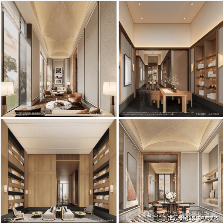 质感立面:采用石材+铝板组合,可视面均为古铜色金属铝板、米黄色铝板/石材,搭配边套270°大转角飘窗,从正面、侧面到背面,立面精致统一,颜值与质感双在线。