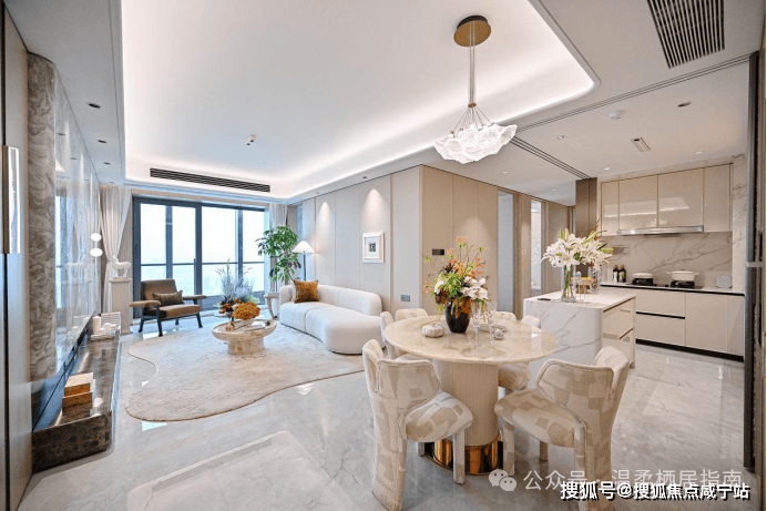 客餐厅进深约9.2米,采用LDKB一体化设计,空间方正通透,整体面积约52㎡,打破烹饪与客厅的界限,实现家人互动无界衔接。