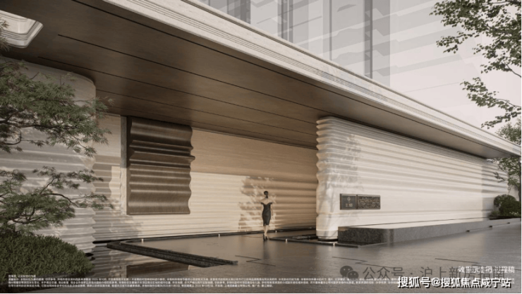 弧形仿石铝板勾勒立面层次,门厅、柱体、台面皆以柔弧过渡,不同材质成多倍投入以达最佳效果,打造温润高贵、典雅内敛的独有气质