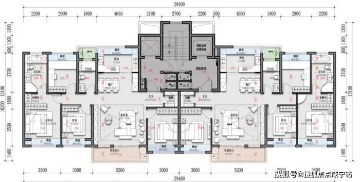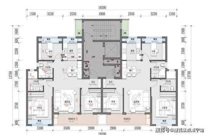 竖厅格局,动静分离,景观阳台、S墙这些点都能看到。能做飘窗的地方也基本都做了。