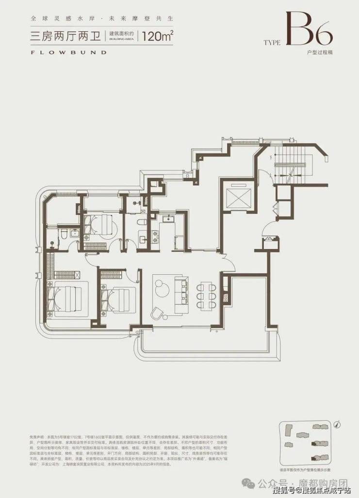 建面约120㎡的大横厅、双阳台产品,并没有勉强去做4房,而是打造了一个超宽绰的3房产品。