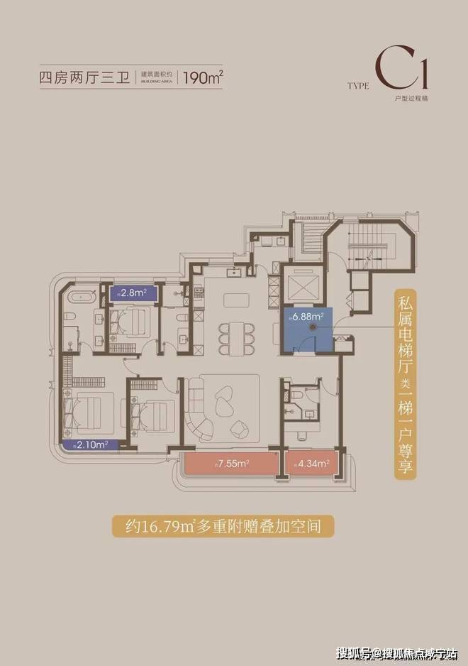 更何况,这还是一梯一户+双阳台的建面约100㎡产品。