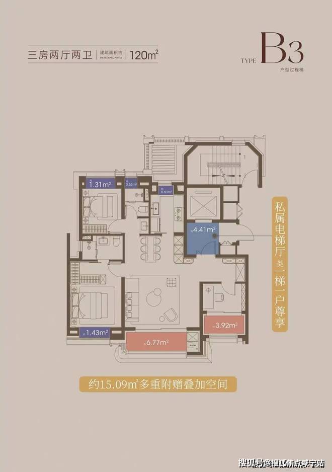 这意味着百平米的业主也能享受一整个独立的电梯厅,这是私密性的保障,更是生活的拓展。
