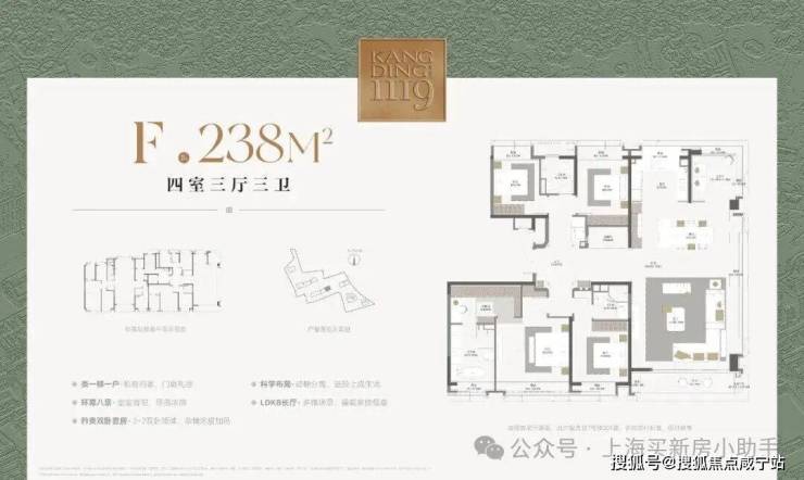 康定壹拾玖三批次加推123-238㎡3-5房在售,均价17.18万/㎡,项目作为静安老城区稀缺产品,在细节及产品力上受到广大上海顶豪客户的喜爱,目前少量房源在售,