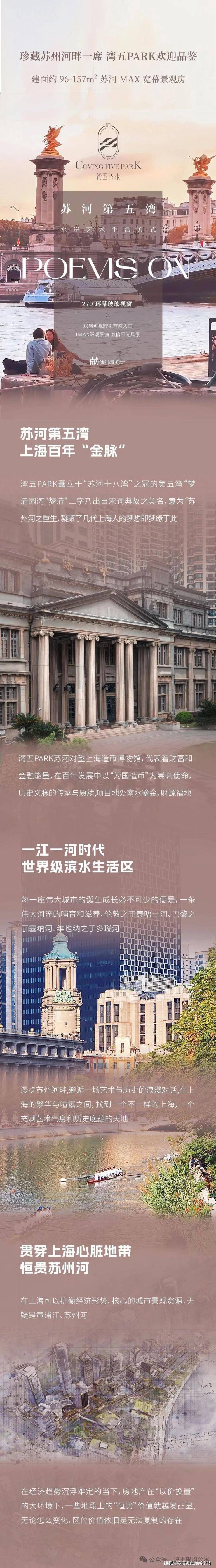 新品上线,【湾五park】普陀苏州河景观房,镇坪路地铁600米,楼下就是融创晶彩天地,面积96-157m²精装平层公寓面积96.14-105.95-157.12m² 体量10套(均价5.5万)公区环境+大厅+…