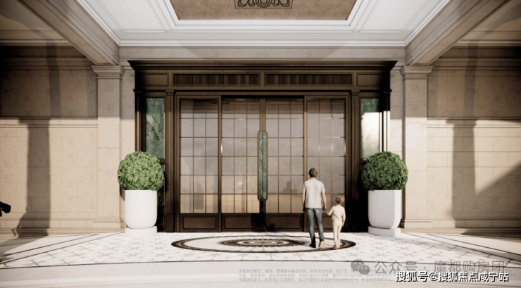 汲取伦敦老牌豪宅区切尔西公寓建筑立面灵感,传承并以现代建筑语言转译18世纪的乔治亚风格建筑,呈现严谨的对称与精致的细节,赋予建筑秩序之美;“三段式”黄金分割比例,与源自巴黎旺多姆广场灵感的线条肌理,融合“刚与柔”的几何美感,构筑城市封面级的建筑标杆。