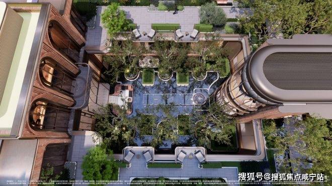超50米轩阔门仪 的门庭起步,经 缦水华庭 、下沉庭院,再到湾畔花园,最后抵达单元入户,层层递进。