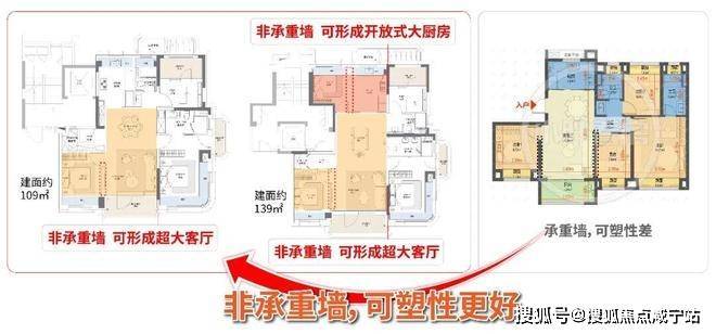 项目约109㎡户型,实际使用面积堪比常规约130㎡户型;约139㎡户型,使用效果接近常规160㎡大平层。相当于 少花近20㎡建筑面积的钱,却能享受到同等的空间尺度