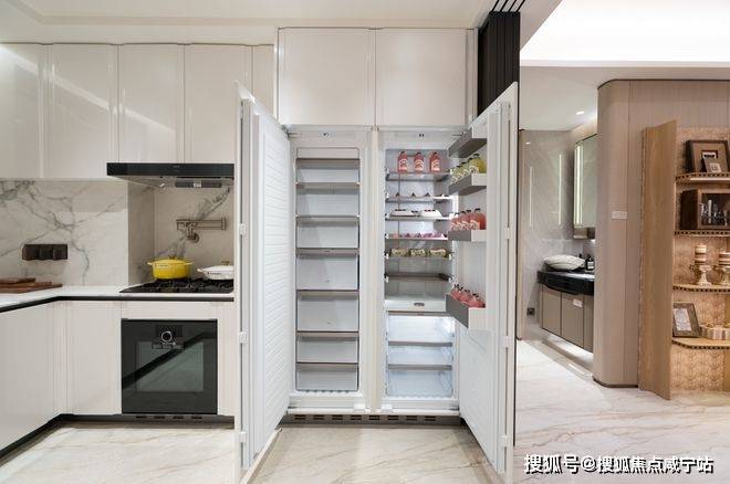 也得益于高实得率,过去109㎡户型的厨房大多局限在6㎡以内,局促又不便,而前滩元境将厨房拓展至8.1㎡,即便小户型也能轻松容纳双冰箱。