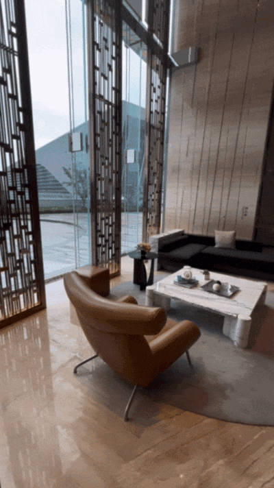 2.公区颜值拉满,甚至可以秒杀五星级酒店,首层大堂9米挑高,搭配落地窗和艺术香氛,礼宾服务堪比高端酒店。