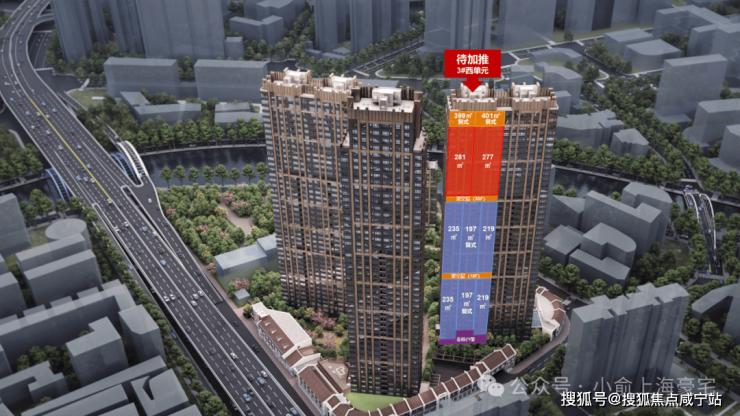 高区大平层277㎡、281㎡ 俯瞰苏河湾与城市中轴,无遮挡极致视野;