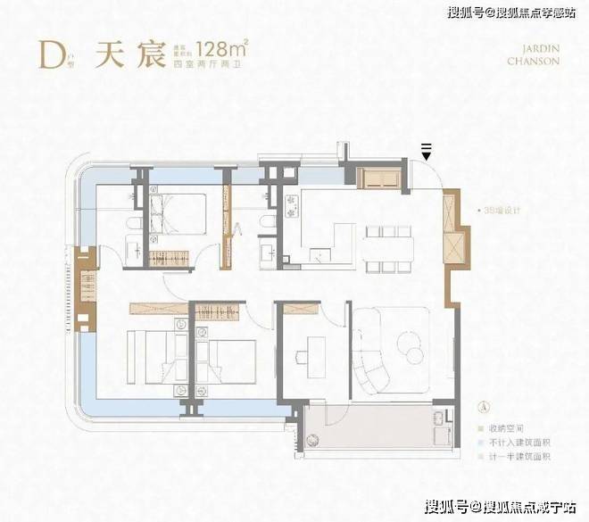 【象屿·天宸雅颂】售楼处预约热线:400-8800-703项目建面约128㎡4房户型延续了前作3S墙的设计,保证了收纳空间的丰富性。
