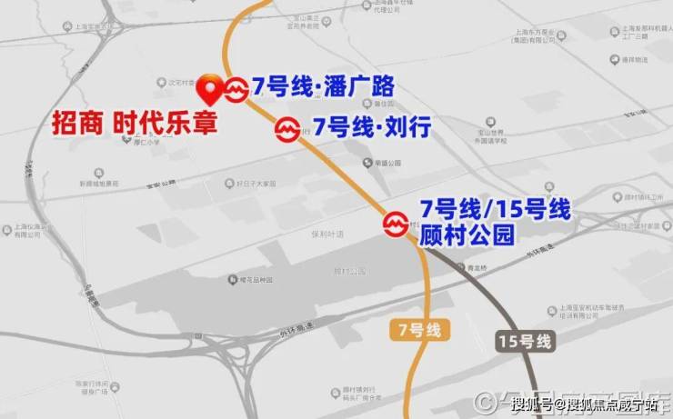 从空间布局来看,顾村规划形成“两轴一带七片”的空间结构。东西向有宝安公路产城空间拓展轴,南北向有上海地铁7号线产城服务发展轴,两条重点轴带正是交汇于潘广路站所在片区。