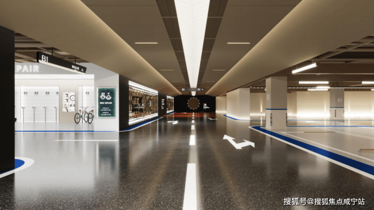 地库内还设计了专业细分的自行车泊车体系,在非机动车库我们设置了一个修车功能空间,住户可以便利的获取专业的修车工具,维护自己的自行车。并在动线上充分考虑业主的使用需求,为业主规划舒适便利的低碳归家之旅。