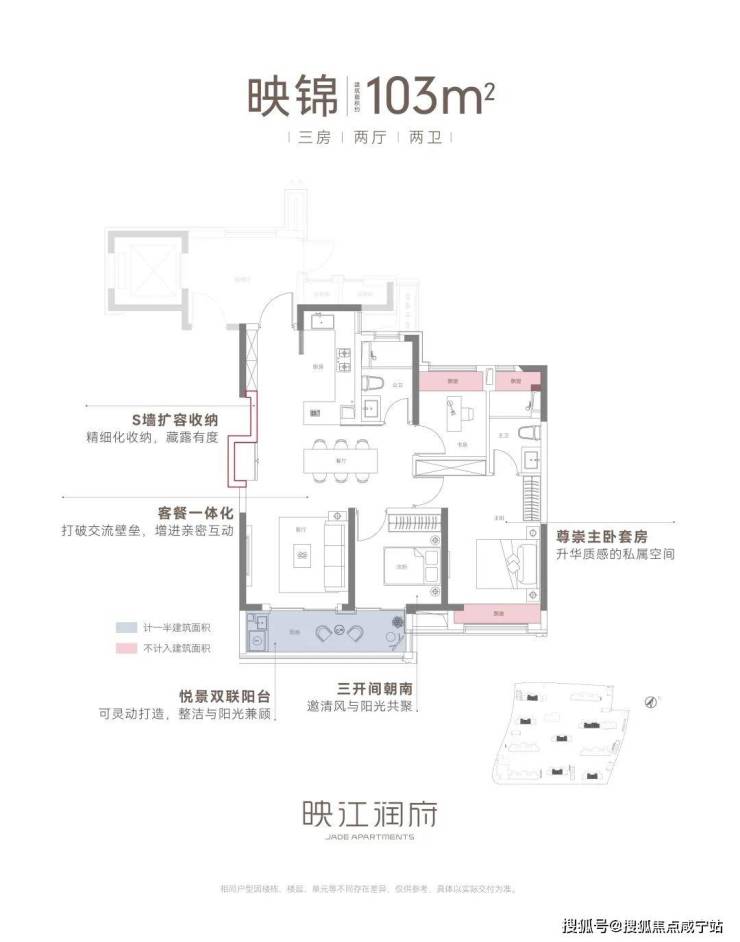 6. **户型设计**:户型多样,主打89-103㎡的3房户型,满足不同家庭需求[^105^][^108^]。