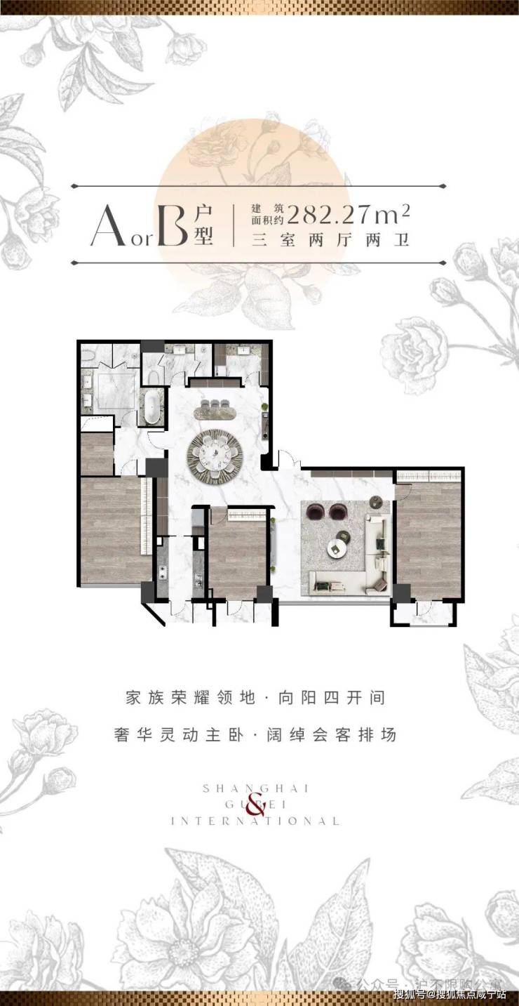 【古北·逸庐】送学区的公寓,单价仅3.8+,,长宁古北精装大平层,面积283㎡,得房率83.7%,通燃气,带3阳台点击输入图片描述(最多30字)认购送:✅送一篮子重点学区子女就学方案✅送5年物业费✅送5年停车…