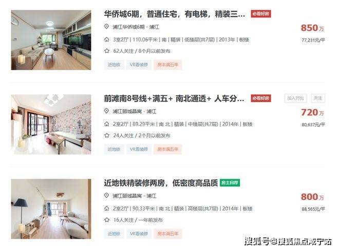 特别是浦江华侨城、浦江颐城晶寓、浦江颐城尚院这一批房龄较新的,挂牌价格大多稳定在8万/㎡左右。