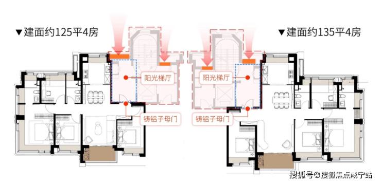 四房产品配备类一梯一户设计,以及市场罕见的阳光梯厅!
