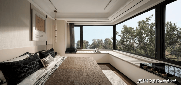 e.就连主卧也暗藏惊喜,约270° 无柱式转角飘窗搭配双面采光的卫生间,让居住更澄澈舒心。