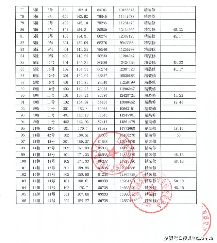 附一期全套一房一价表: