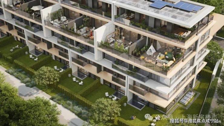 创新打造层层露台 + 垂直⽣态体系,将庭院托举至云端,让每一位居者都能拥享有天有地的院落体验,实现上下叠庭院平权。