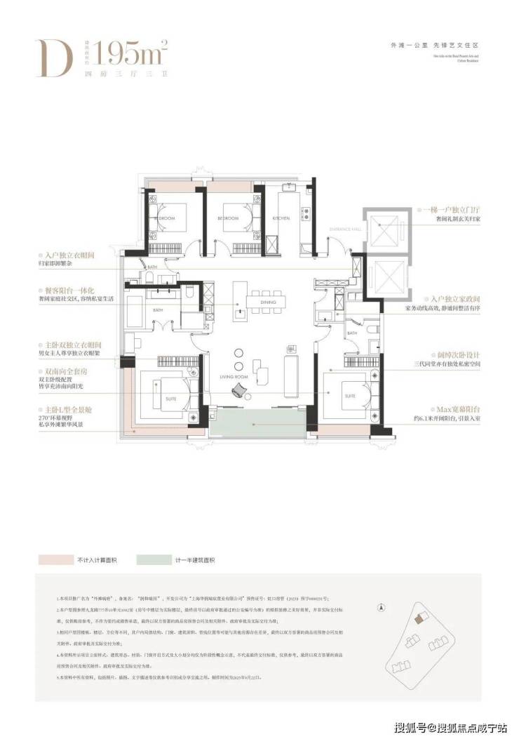建面约240㎡四房三厅三卫,由国际知名室内设计师吴滨执笔, 以 厨电、收纳、家政、智能、幕墙、定制 “ 六大满配 ” , 实现了从空间功能、材质美学到身心体验的全维革新 :