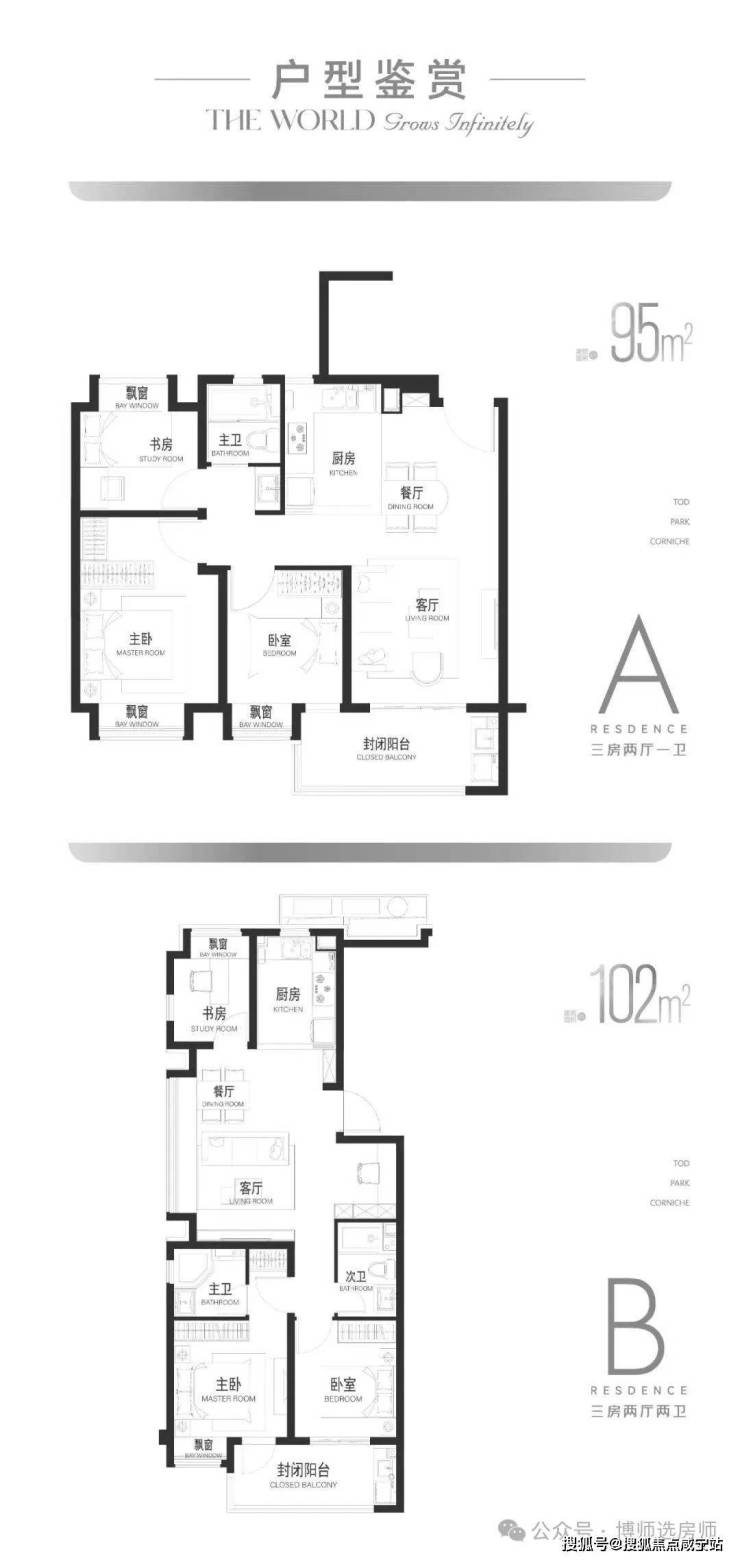 A户型95㎡及B户型102㎡▼