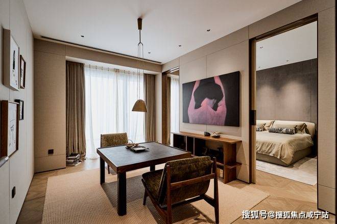 样板间直接把选配方案呈现眼前,将北向卧室打造成了以屏风软隔断的第三空间,可作为影音室或者Homebar使用,实在是太懂现在年轻人对休闲空间的需求!