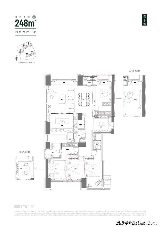 【龙盛·湾上】每一期样板间都给年轻菁英人群带来不一样的亮点,不断升级装修标准及用材等,这次项目建面约248㎡户型更是设计出选配方案,户型设计可以根据自身需求定制化选择:
